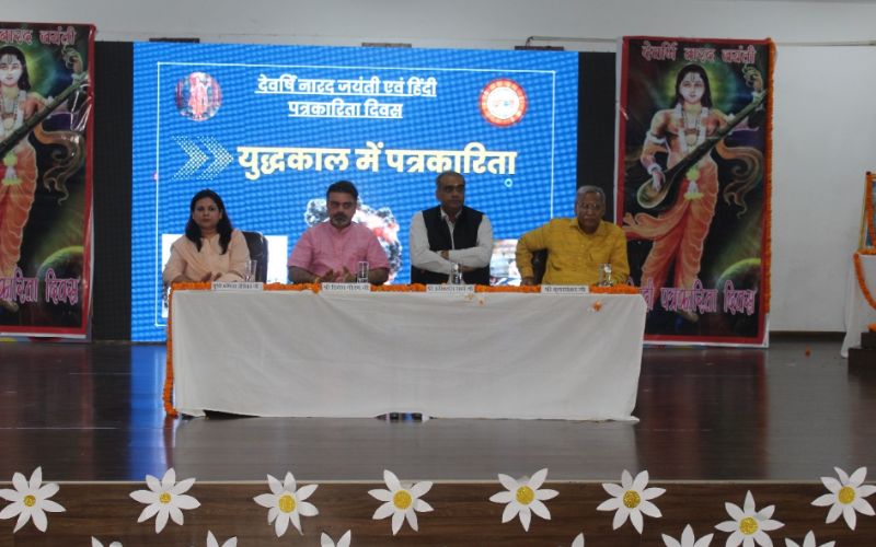 Wartime Journalism : भारत पाकिस्तान के चार दिन के युद्ध के उपरांत अंतर्राष्ट्रीय मंच में राष्ट्रीय स्तरीय विमर्श निर्माण में पत्रकारों की महत्वपूर्ण भूमिका है। नारद जयंती और हिंदी पत्रकारिता के उपलक्ष में आयोजित कार्यक्रम में “युद्धकाल में पत्रकारिता” विषय पर बोलते हुए मुख्य अतिथि अखिलेश शर्मा ने इस संगोष्ठी के आयोजन एवं विषय की प्रसंशा की। उनके मुताबिक पत्रकार होने के नाते युद्ध काल या ऐसे किसी भी महत्वपूर्ण समय में पत्रकारों की जिम्मेदारी और भी बढ़ जाती है ऐसे समय में नागरिकों के लिए सूचना के अभाव को भरना बहुत जरूरी है। क्या युद्ध काल में अपने दायित्व का पालन कर रहे हैं या नहीं? ये देखना बहुत जरूरी है। साथ ही उन्होंने इस बात भी जोर दिया कि ऐसे में ऐसी कोई भी सूचना आपकी तरफ से नहीं प्रस्तुत की जानी चाहिए जिससे दुश्मन को सहायता मिले। बतौर पत्रकार हमें अपनी सीमा, मर्यादा, जिम्मेदारी और दायित्व नहीं भूलना चाहिए।